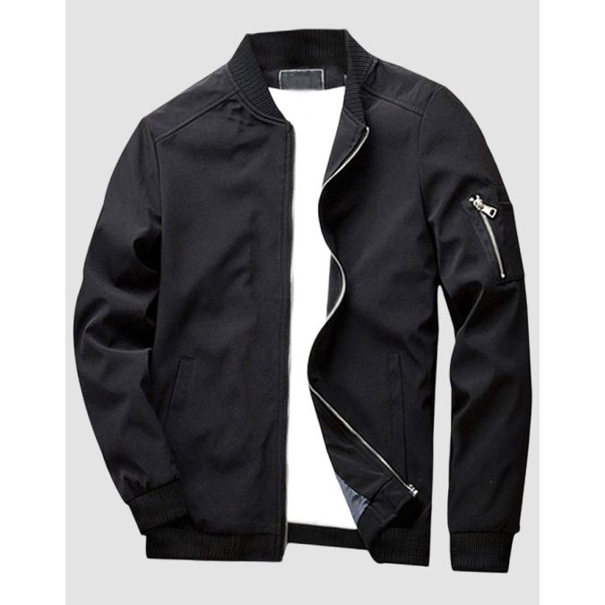 - Slim fit band collar full sleeves zipper workout thin flight bomber jacket coat